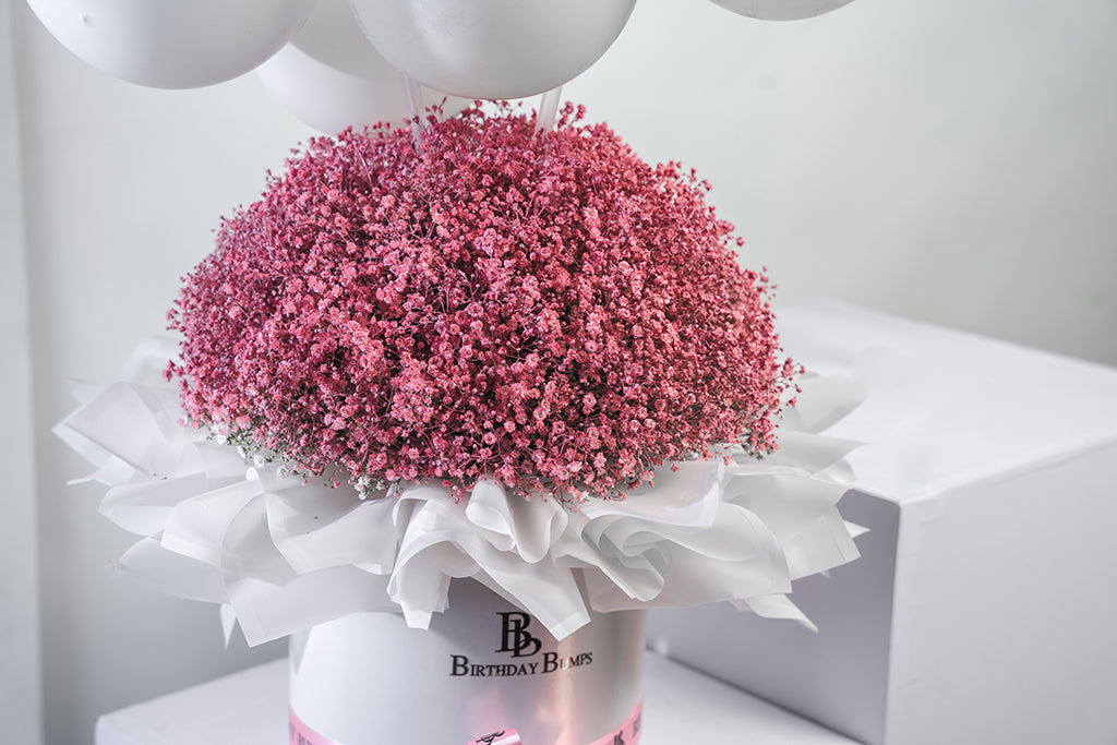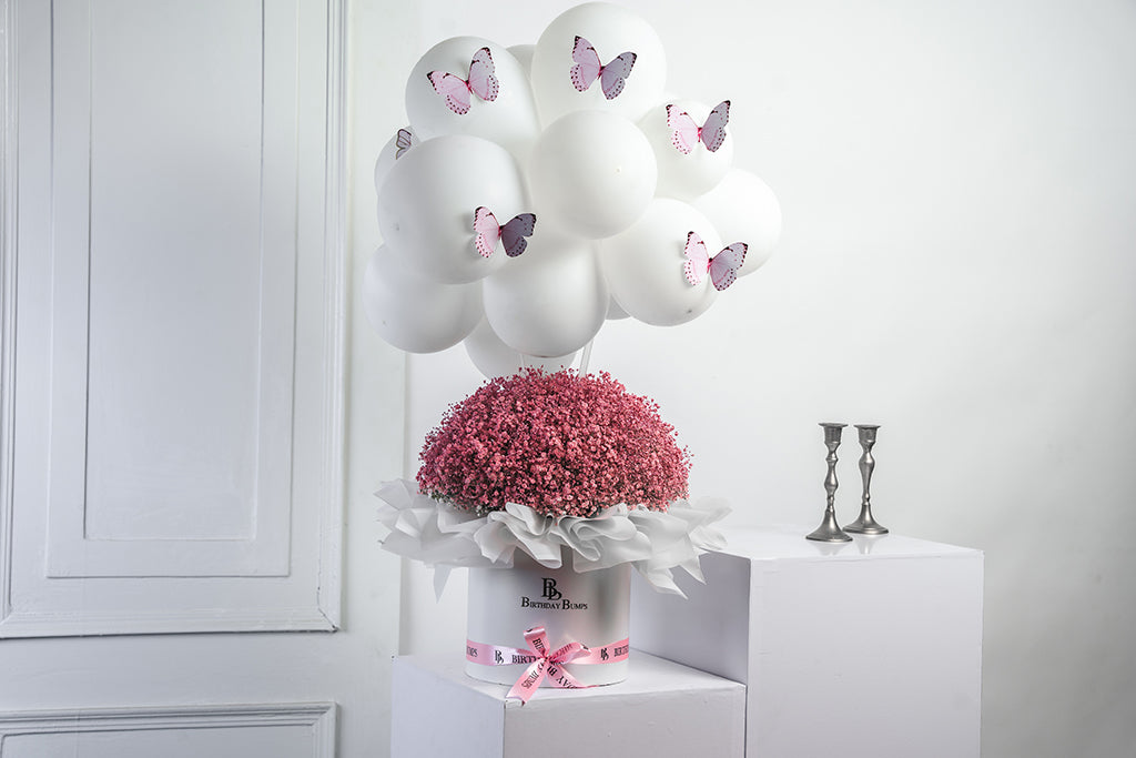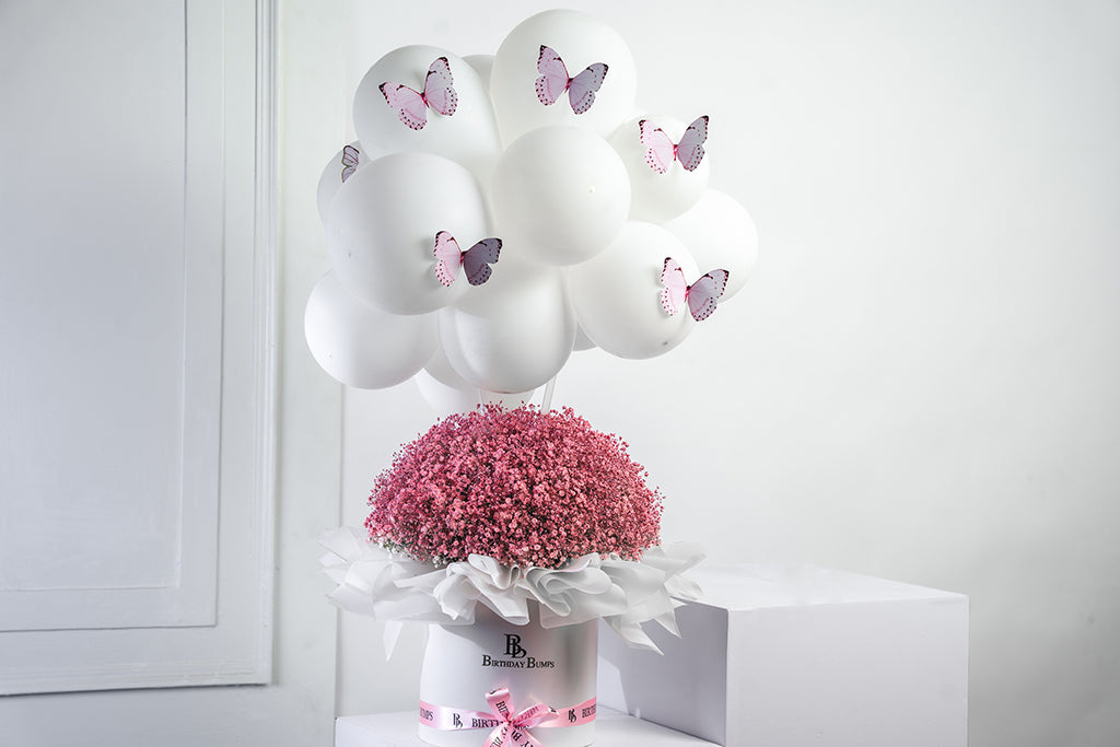 Featuring beautifully Pink Sprayed Gypsophilas with White Cloud and Butterflies. Perfect for adding charm and elegance to any space.