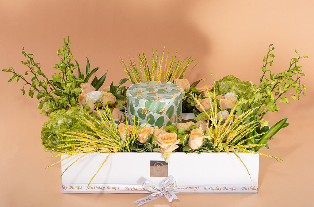 Introducing "Eternal Emeralds," a captivating arrangement featuring Peach roses, crisp Green Ficus, lush Green Hydrangea , and whimsical noodle sticks. This enchanting combination evokes the timeless allure of precious emeralds, infusing any space with elegance and charm. Let "Eternal Emeralds" add a touch of everlasting beauty to your surroundings.